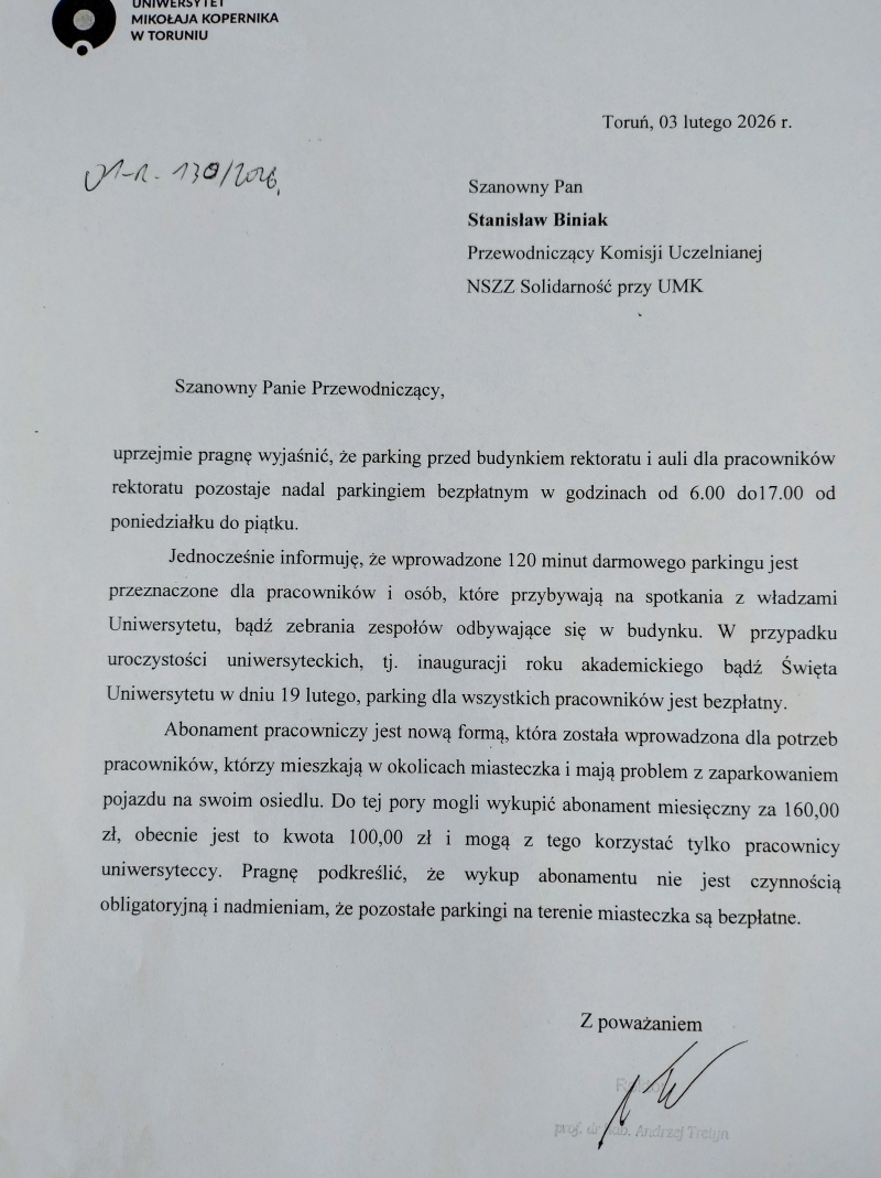 Zamieszczamy odpowiedzi JM Rektorem w dwóch sprawach, które ostatnio wzbudziły nasze obawy: