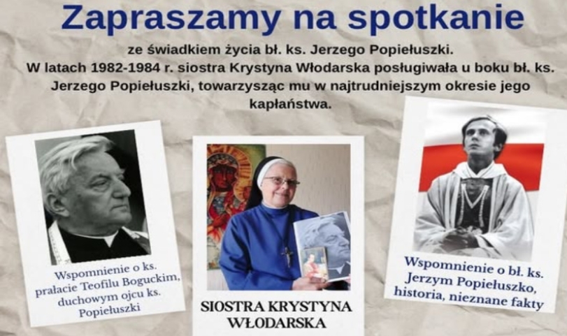Krystyna Włodarska jest służebniczką Najświętszej Maryi Panny Niepokalanie Poczętej. To właśnie Ona latach 1982-84 posługiwała w parafii św. Stanisława Kostki na Żoliborzu w Warszawie, a teraz przyjedzie do Inowrocławia ze specjalną prelekcją.